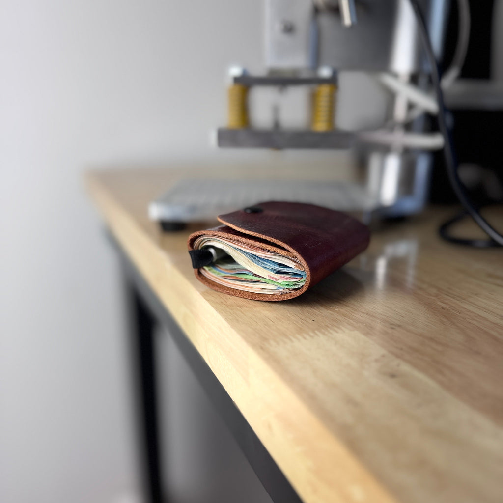 Ein schlichtes, handgefertigtes Wallet aus echtem Leder.
